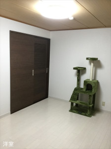 洋室は当分は飼っている猫ちゃんのお部屋として利用予定。いずれは子供部屋として利用するので白く明るいお部屋にしました。