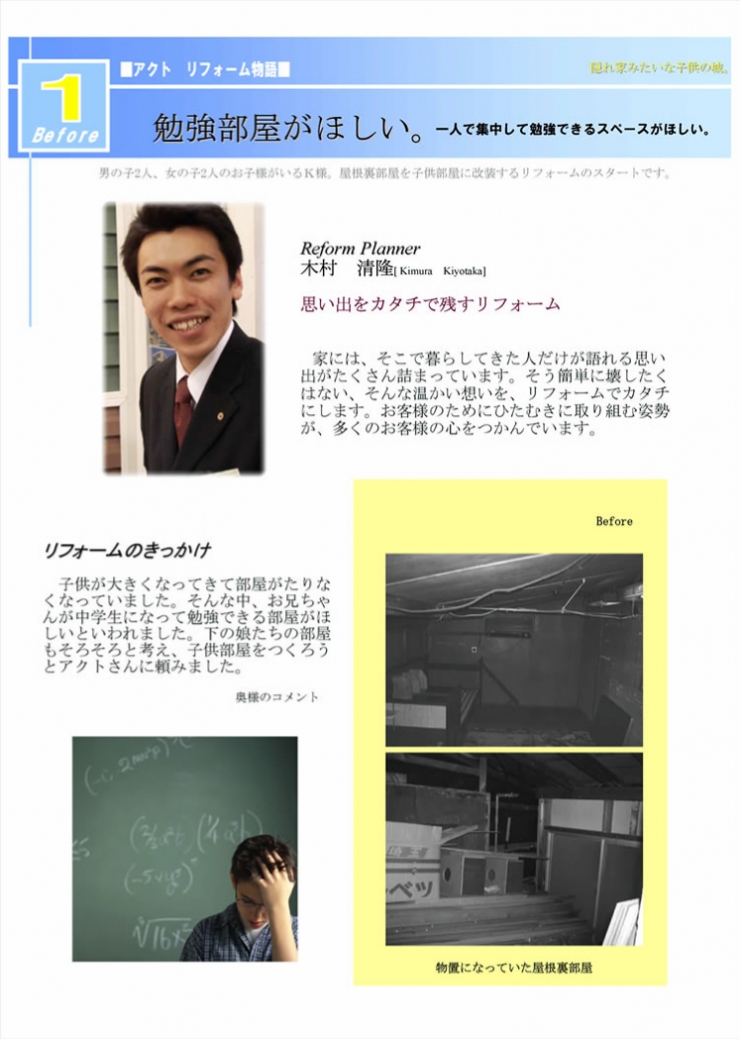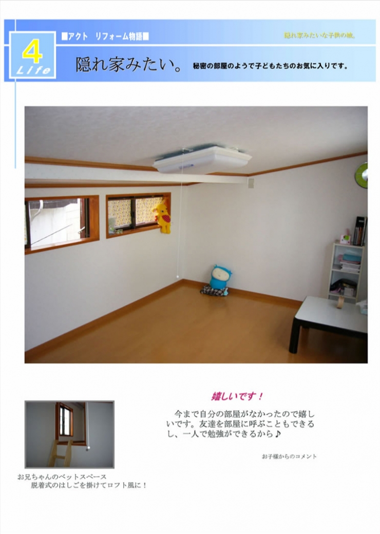 このお宅では、今まで使っていなかった屋根裏部屋を子ども部屋にリフォームすることになりました。